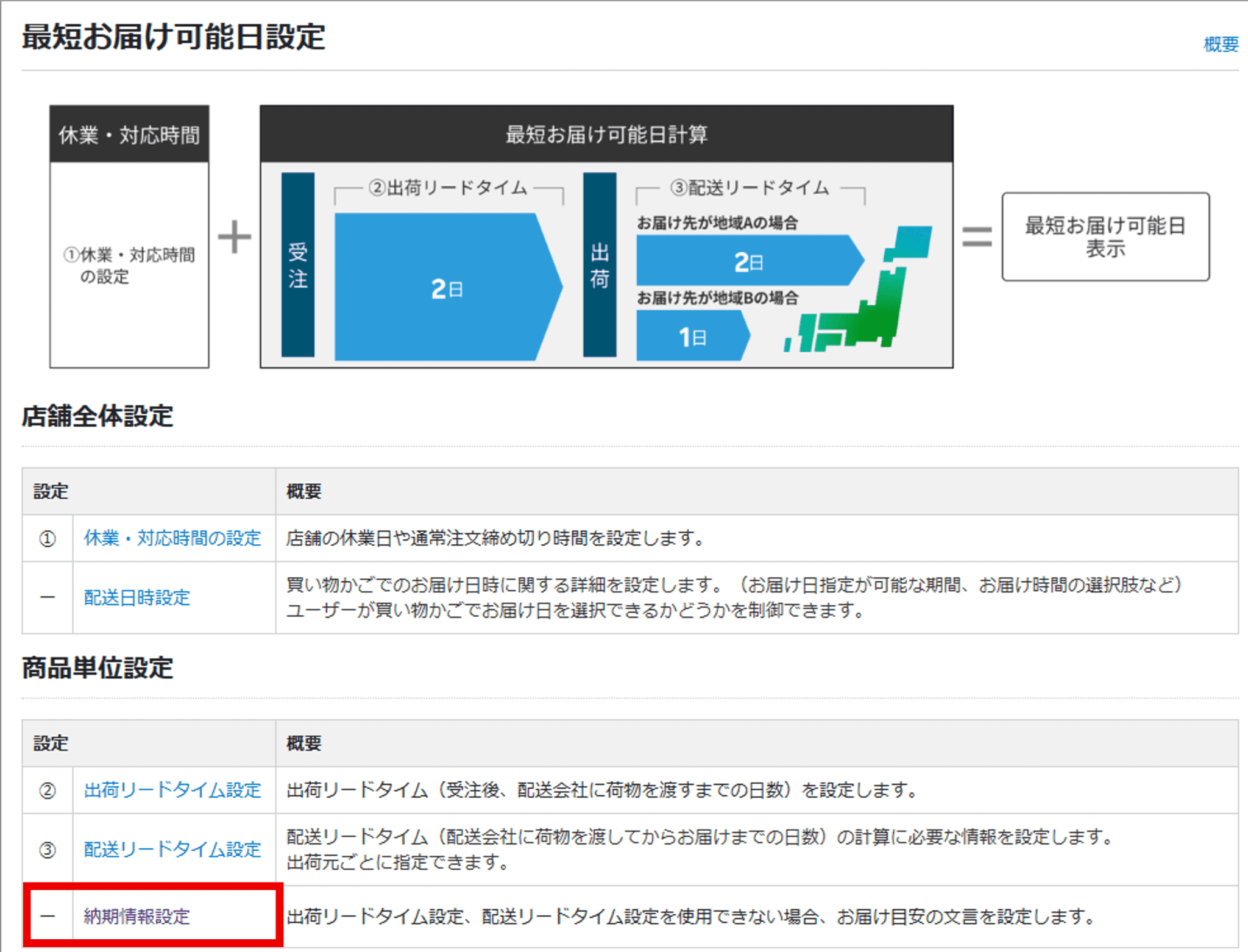 楽天の納期管理番号がそのまま移行されますので、「発送日情報管理番号」と「発送日表示設定」は楽天と一致させてください。